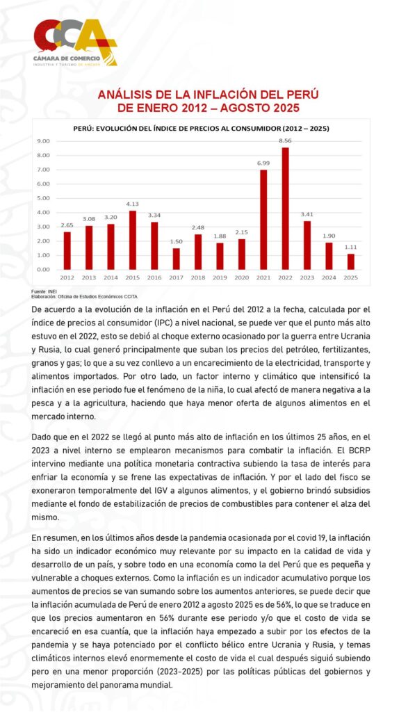Inflación en el Perú (2012 – 2025), el análisis del Índice de Precios al Consumidor (IPC) muestra cómo la inflación ha impactado en la economía peruana en los últimos años, afectando el poder adquisitivo de los hogares y marcando la dinámica del crecimiento nacional.