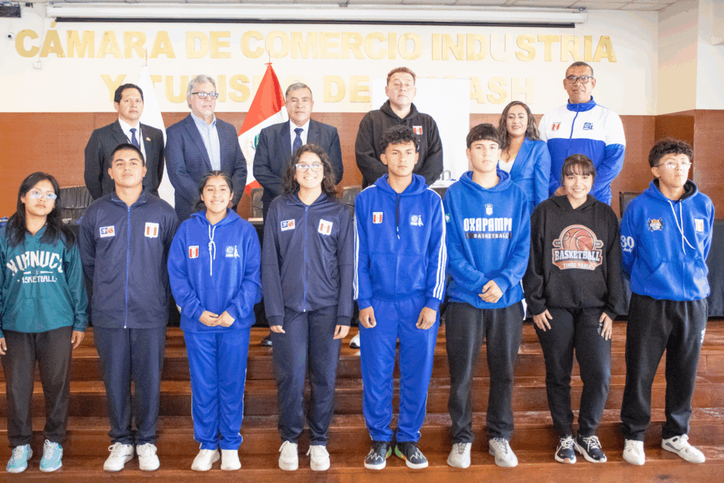 La Cámara de Comercio, Industria y Turismo de Áncash reafirma su compromiso con el desarrollo del deporte en nuestra región, apoyando la adquisición de buzos para la selección de Huaraz, que representará a nuestra ciudad en el Campeonato Nacional de Basketball U15, en las categorías femenino y masculino.