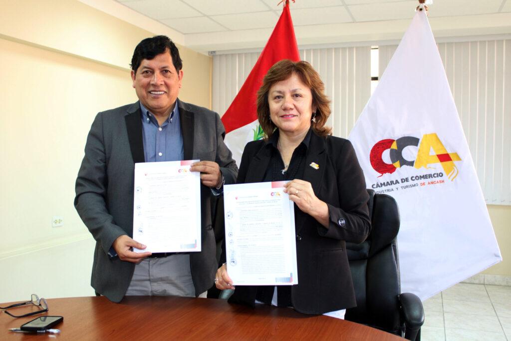 Con el objetivo de fortalecer la formación profesional, la investigación aplicada y el desarrollo empresarial en la región, la Cámara de Comercio, Industria y Turismo de Áncash y la Universidad César Vallejo (UCV) firmaron un convenio de cooperación interinstitucional.
