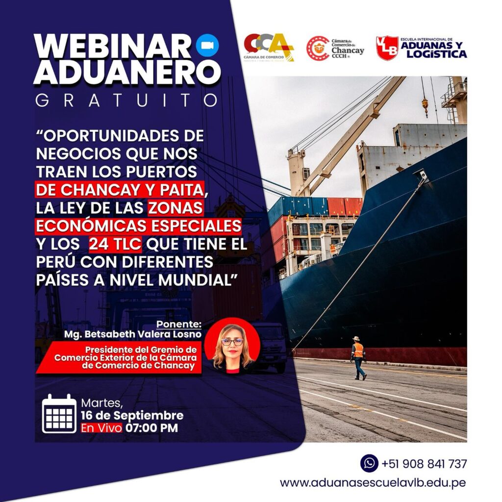 Organizado por la Cámara de Comercio, Industria y Turismo de Ancash, la Cámara de Comercio de Chancay y la Escuela Internacional de Aduanas y Logística VLB